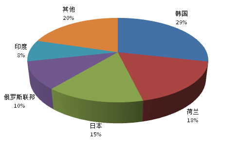 2016年7月中国锰及其制品(包括废碎料)主要出口至韩国和荷兰