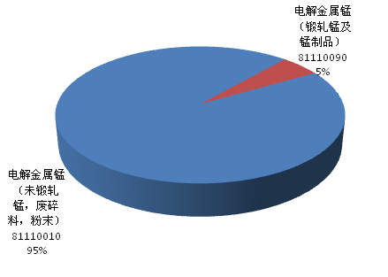 2015年10月中国锰及其制品(包括废碎料)出口16,946.22吨,其中电解锰占比为95%