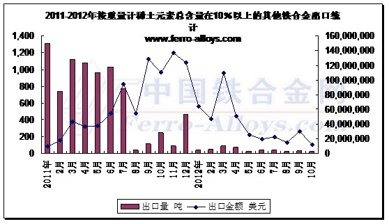 中国铁合金网讯:中国海关统计咨询服务中心(简称CCS)1月22日统计数据显示,中国2013年出口稀土矿石、金属及化合物22493吨,出口量较2012年增长38.3%,但远低于2013年的出口配额 |