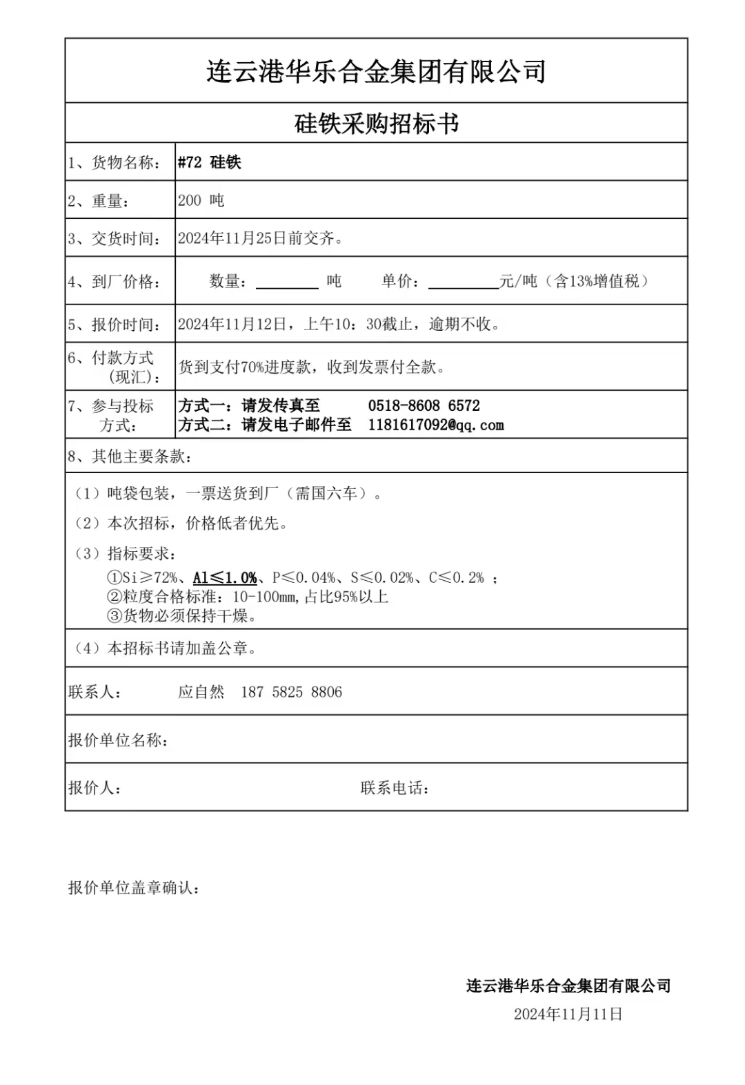 河钢集团11月硅锰采购量环比增加300吨 由中国铁合金网与国际冶金资源工业协会主办的第21届中国铁合金国际会议定于2025年3月2日-4日在厦门市召开,我们诚邀您相聚美丽的滨海城市鹭岛,共同展望2025年铁合金发展趋势! |