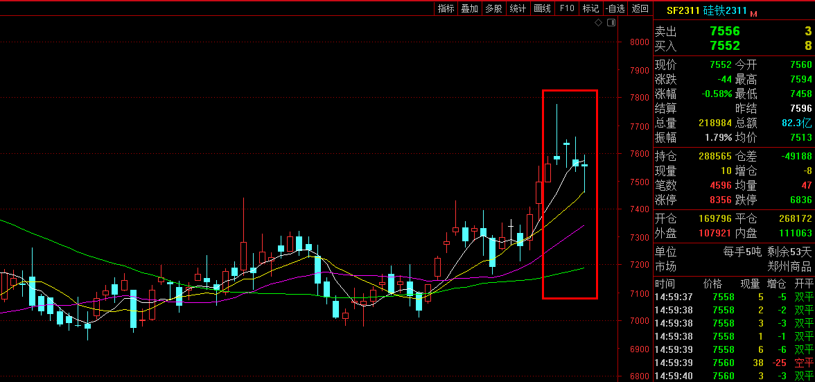 Below are Ferrosilicon Futures main contract daily specific performances: