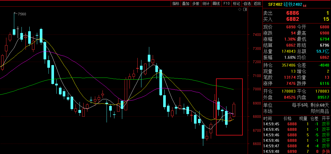 [Futures Market] The opening price of 2402 main contract was 6,908, the highest price was 6,936, the lowest price was 6,718, the closing price was 6,890, the settlement price was 6,862, the position was 357,406, the trading volume was 841,716, and the transaction amount was 28.7151 billion yuan, an increase of 0.12%.