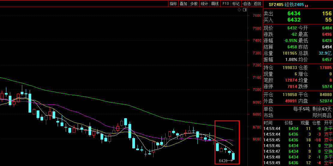 The total trading volume of 2403 contract on the exchange was 73459 lots, with a turnover of about 2384.9394 million yuan. |