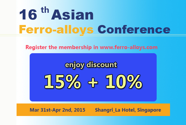 Saving 15% Conference Charge for 16th Asian Ferro-alloys Conference