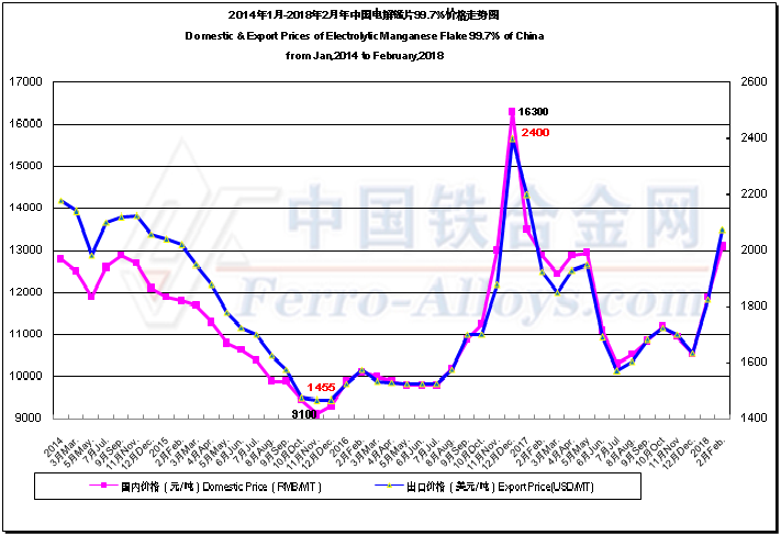 Up to now, electrolytic manganese flake keeps upward tendency with RMB14,100-14,200/mt with several reasons as below: [More]