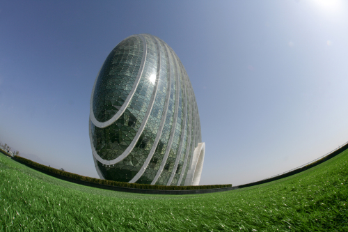 中国铁合金网讯:2014年APEC会议于11月10日至11日在北京怀柔雁栖湖举行,日前峰会场馆曝光,引来人们的关注,眼尖的网友发现,峰会场馆中日出东方大酒店造型因像一个竖立着的“鸡蛋”,把它归纳为“奇奇怪怪”的建筑。