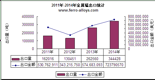 2014年中国金属锰出口量同比增加31%
