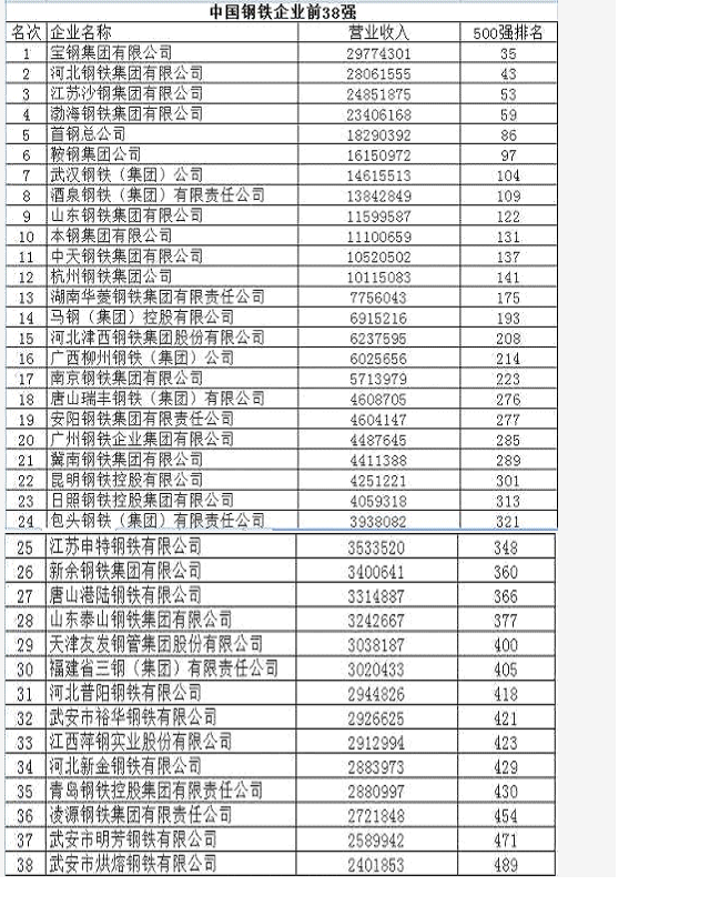 其中,12家石油企业、20家煤炭企业、38家钢铁企业及23家电力企业位列榜单。中国石油化工集团、中国石油天然气集团、中国海洋石油总公司位列石油企业最强榜前三,中国石油化工集团位独占中企500强、石油企业500强两项鳌头;神华、正威国际、山西焦煤集团位列煤炭榜前三强;宝钢集团、河北钢铁集团、江苏沙钢集团位列钢铁榜前三强;国家电网公司、中国南方电网有限责任公司、中国华能集团公司位列电企前三强,国家电网公司以营收209136337万元位居电企最强,在中企500强中位列第三位。(来源:国际能源网)