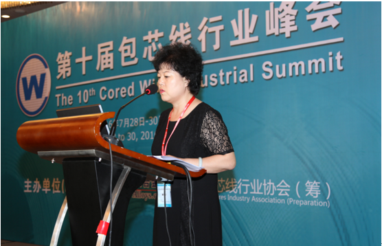 中国铁合金网总经理潘慧宁做了《2016包芯线和包芯线原材料市场展望》的报告。