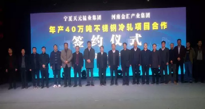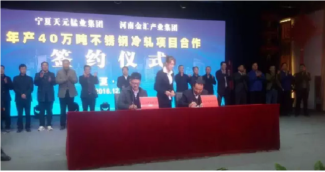 中国铁合金网讯:12月18日,在美丽的塞上江南--宁夏,河南金汇不锈钢产业集团和宁夏天元锰业集团签署年产40万吨冷轧不锈钢制品项目合资合作协议。