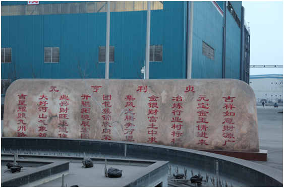 这张照片是吉元集团的招财靠山石,每句话第一个字连起来是“吉元冶金集团开业大吉”。