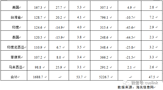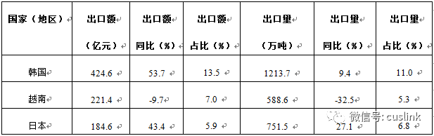 4、韩国和越南为主要出口市场,对韩国和日本的出口大幅增长。