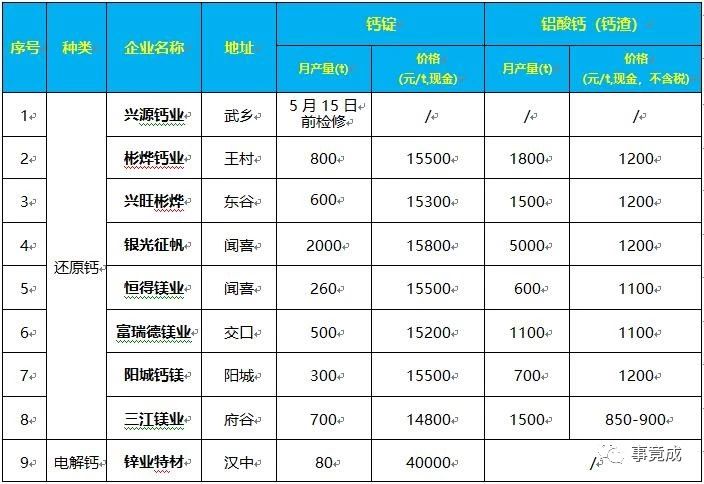 注:1、还原钙4月份库存总量为330吨