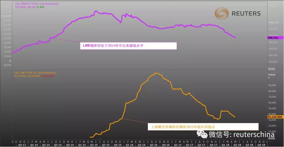 LME镍库存处于2014年中以来最低水平,上海期交所镍库存也接近2015年11月以来低点,都表明了市场紧俏。
