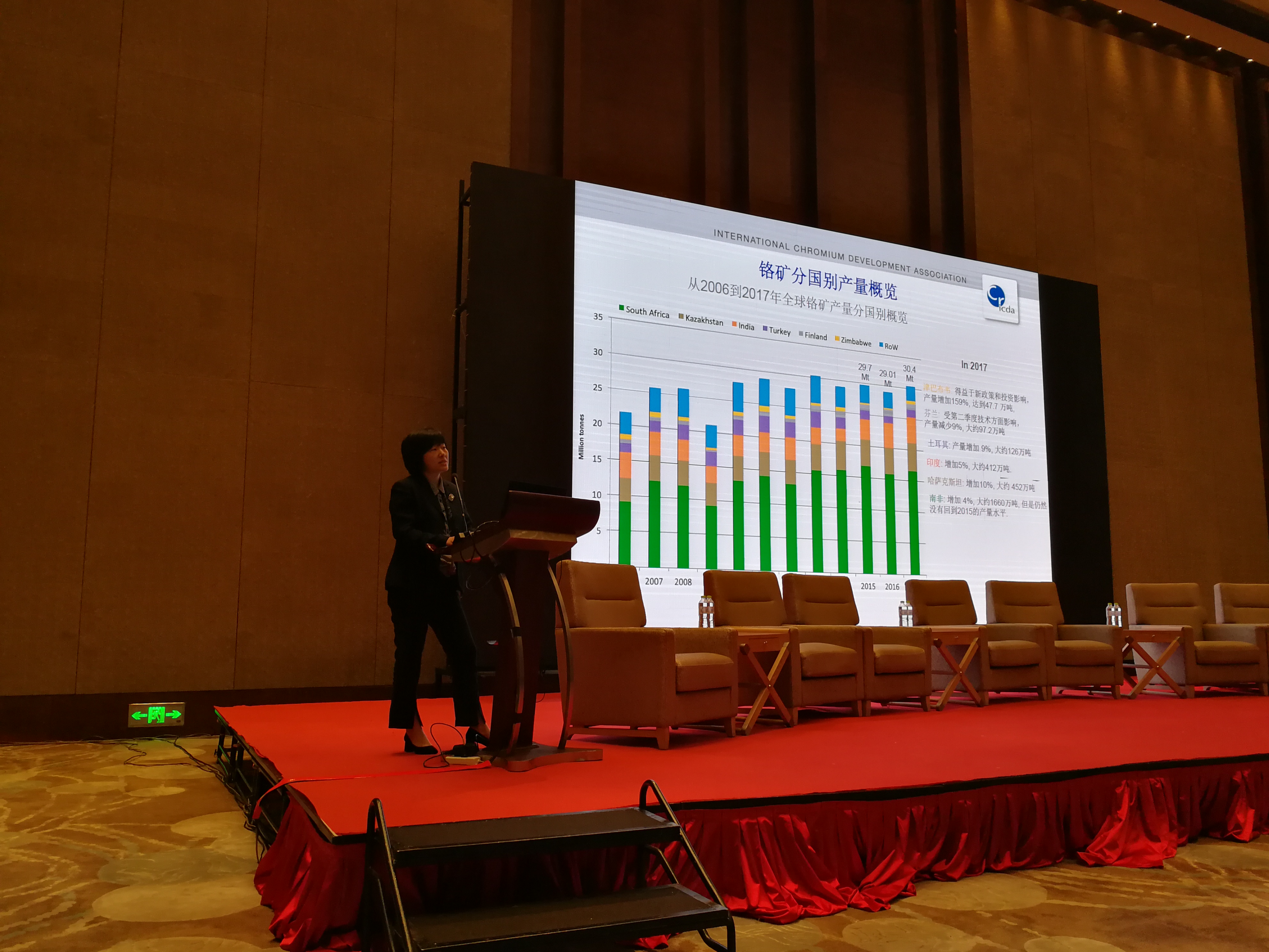 此次会议主办方还邀请了国际铬发展协会中国区代表孙莹女士进行演讲。孙女士结合着协会多年统计的数据,回顾并解析了全球铬矿及铬铁产量及价格的走势,并对主要的铬矿铬铁生产国的近年来的状况进行了陈述与分析。此外,孙女士还对未来铬行业的发展趋势进行了分析与展望,并预测了未来铬行业的期待因素。