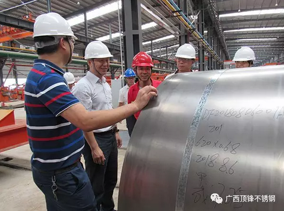 【中国铁合金网讯】 2018年8月6日梧州市副市长姜云飞带领分队前来参观广西顶锋不锈钢有限公司年产30万吨不锈钢冷连轧项目,公司董事长潘礼双、总经理康君等陪同进车间参观调研。