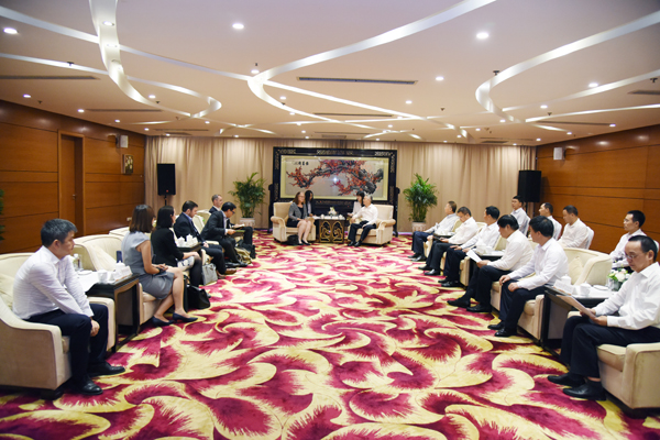 【中国铁合金网讯】8月24日,澳大利亚驻华大使安思捷带领澳驻华使馆商务参赞、能源与资源参赞、农业参赞等一行到陕钢集团访问,就进一步推进澳大利亚铁矿石企业与陕钢集团深入合作进行交流,陕钢集团公司党委书记、董事长杨海峰会见了安思捷一行,陕钢集团顾问窦力威及韩城公司、进出口公司、国际合作部、供应生产部、办公室、党群工作部主要负责人等参加会见。