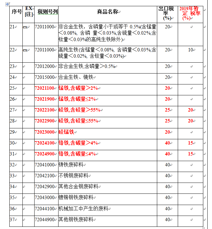 中国铁合金网讯:12月24日,财政部公布了2019年进出口商品关税,2019年铁合金出口关税维持不变。体现了政府限制“两高一资”的产品出口的政策不变。铁合金人期待已久的取消铁合金出口关税结果落空。