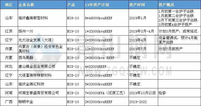 【中国铁合金网讯】2019年国内、印尼均有部分矿热炉工厂新增投产,国内部分镍铁工厂计划19年复产开工。如下表统计,为2019年国内新开、复产矿热炉工厂情况汇总。其中鑫海新型材料、扬州一川、光大冶金、(奈曼)经安有色为19年投产可能性较大的工厂,剩余工厂今年投产、复产可能性较小。