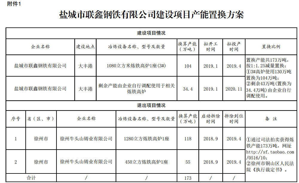 【中国铁合金网讯】按照《国务院关于化解产能严重过剩矛盾的指导意见》、《国务院关于钢铁行业化解过剩产能实现脱困发展的意见》和《钢铁行业产能置换实施办法》要求,我厅于2019年2月1日-15日对盐城联鑫钢铁公司3号高炉产能置换方案进行了公示。现将方案予以公告,欢迎社会公众监督。