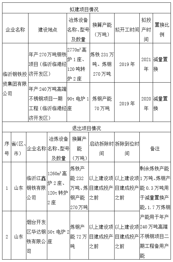 【中国铁合金网讯】2019年4月15日至5月13日,按照《国务院关于化解产能严重过剩矛盾的指导意见》、《国务院关于钢铁行业化解过剩产能实现脱困发展的意见》和《钢铁行业产能置换实施办法》要求,山东省工业和信息化厅将临沂钢铁投资集团有限公司项目产能置换方案进行了公示,公示期间无异议,现予以公告,欢迎社会公众进行监督。监督电话:0531-86915301。