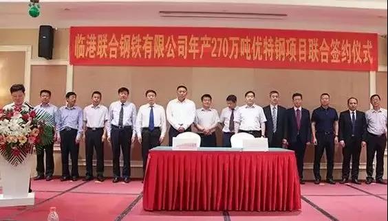 【中国铁合金网讯】5月24日,临港联合钢铁有限公司年产270万吨优特钢项目联合签约仪式在华盛江泉城大酒店举行,并计划于8月份开工建设。临沂市政府副秘书长冉贤出席仪式并讲话,临港区党工委委员、管委会副主任黄慧林等相关领导和公司出席仪式,临沂市高端不锈钢与先进特钢基地建设指挥部办公室协调推进处处长、市重点办主任徐宝宏出席并主持签约仪式。