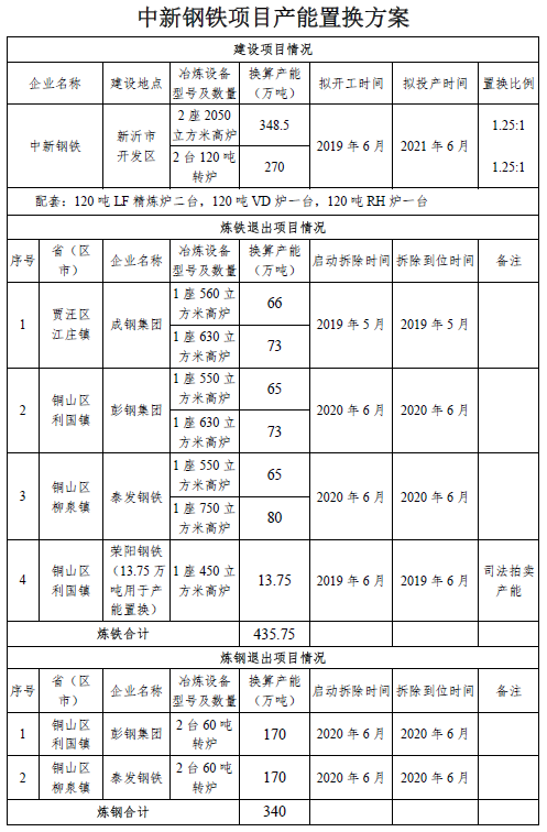 【中国铁合金网讯】按照《国务院关于化解产能严重过剩矛盾的指导意见》、《国务院关于钢铁行业化解过剩产能实现脱困发展的意见》和《钢铁行业产能置换实施办法》有关要求,我厅于2019年5月20日至5月27日对中新钢铁集团有限公司钢铁冶炼项目产能置换方案进行了公示,公示期间未收到书面异议材料。现将方案予以公告,欢迎社会公众监督。