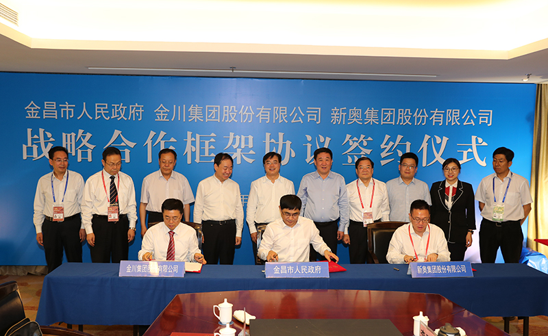 【中国铁合金网讯】7月4日下午,在兰州宁卧庄宾馆举办的第25届兰洽会招商引资项目推介暨签约仪式上,金昌市委副书记、市长杨建武,金川集团公司总经理、党委副书记李尚勇,新奥集团能源总裁刘敏分别代表金昌市、金川集团、新奥集团签订三方战略合作框架协议并会谈。