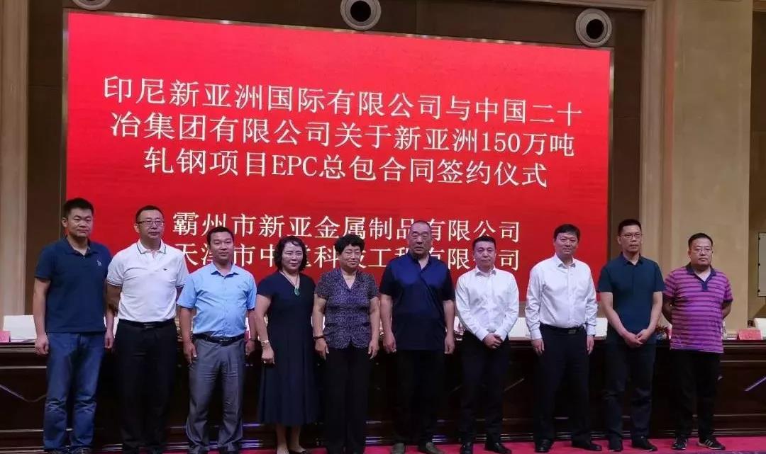 【中国铁合金网讯】7月19日上午,中国二十冶集团公司党委副书记、总经理徐立,集团公司副总经理张钢雨在廊坊市出席印尼新亚洲国际有限公司年产150万吨轧钢项目EPC总承包合同签约仪式。