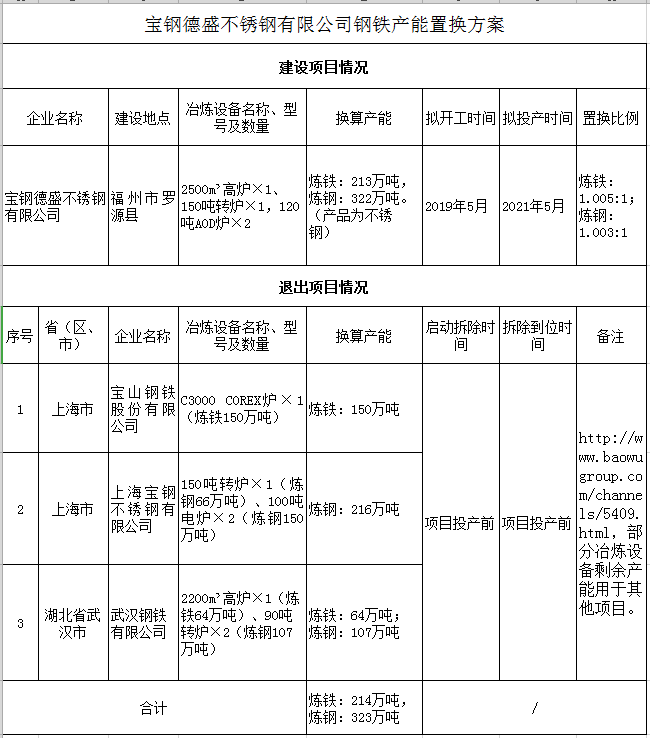 【中国铁合金网讯】近日福建省工业和信息化厅发布宝钢德盛不锈钢有限公司产能置换方案公示。 按照《国务院关于化解产能严重过剩矛盾的指导意见》和《国务院关于钢铁行业化解过剩产能实现脱困发展的意见》和《工业和信息化部关于印发钢铁水泥玻璃行业产能置换实施办法的通知》要求,现将宝钢德盛不锈钢有限公司产能置换方案情况予以公示。