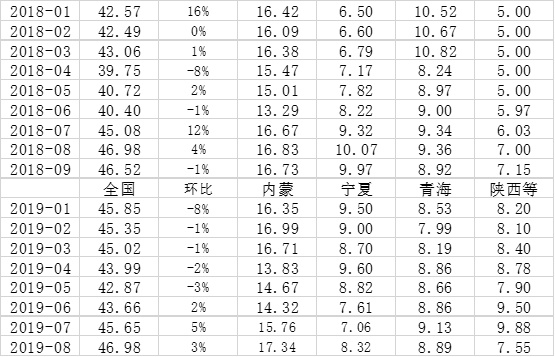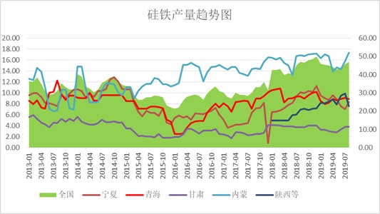 8月硅铁全国产量增1.33报46.98万吨,环比增长3%,稳定于历史高位水平,总体供应量持续稳中有增;其中陕西地区硅铁产量自2018年有统计数据以来,呈现稳步增长趋势,目前月产稳定于9万吨上下,产品以75牌号为主,同时此次调研与当地硅铁厂家交流中了解到:前期新批硅铁产能今年已陆续点火,新增产能持续释放,按照炉型核算,若陕西地区新点火产能正式释放,月产量将再增1万吨左右,陕西地区总产量或增至11万吨/月。