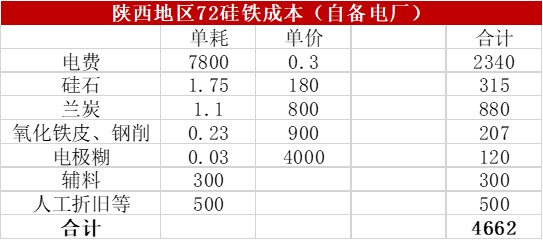 陕西地区硅铁生产受益于兰炭—硅铁—金属镁循环产业链,生产成本相对其他主产区具有绝对优势,平均独立核算成本集中于4500-4600元/吨,并且较为稳定。