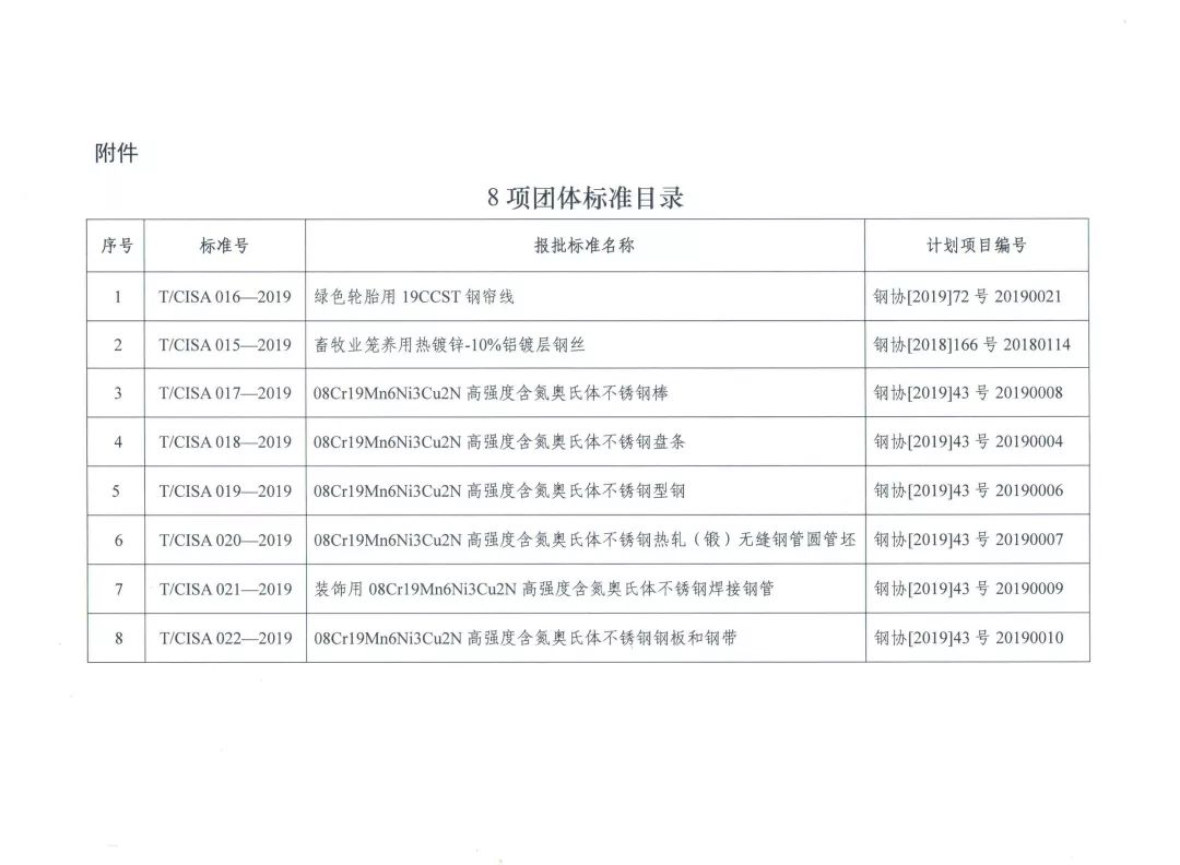 在冶金工业信息标准化研究院专业团队指导下,青拓集团研究院联手福建海利科技有限公司、福建宏旺实业有限公司、广东双兴新材料集团有限公司、佛山市泰裕达钢业集团有限公司、江阴祥瑞不锈钢精线有限公司、奥展实业有限公司、浙江东明不锈钢制品和浙江青山钢管有限公司等产业链战略合作伙伴,编制了高强度含氮奥氏体不锈钢08Cr19Mn6Ni3Cu2N(QN1803)钢板和钢带、装饰焊管、盘条、钢棒、型钢和无缝管坯等六项产品标准,经中国钢铁协会专业标准化技术委员会专家会议审定通过,并经标准化技术归口单位审查合格,近日正式发布,获批中国钢铁工业协会团体标准。