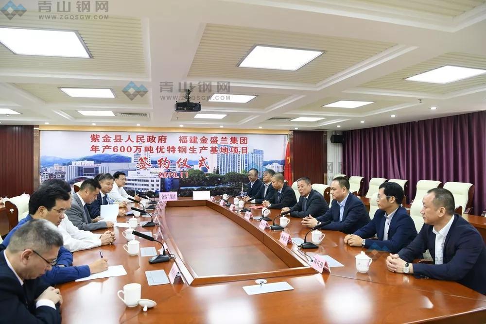 11月5日,广东省河源市紫金县与福建金盛兰集团举行项目签约仪式,计划总投资约130亿元,年产600万吨优特钢生产基地项目正式落户紫金。