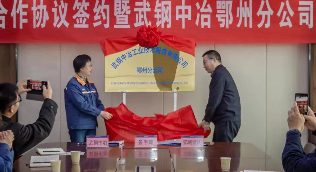 会上,武钢中冶副总经理黄志明宣读了成立武钢中冶鄂州分公司的文件。鄂城钢铁党委书记、董事长王素琳和武钢中冶党委书记、董事长张文辉共同为武钢中冶鄂州分公司揭牌。