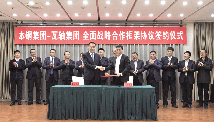 【中国铁合金网讯】5日,本钢集团与瓦轴集团签订全面战略合作框架协议,双方将本着“互为市场、协同研发、合作共赢”的原则,以新形势下双方的共同关注为出发点,着眼长远发展,充分发挥产销联动效应,创新合作模式,实现资源共享、优势互补,共同应对市场挑战。