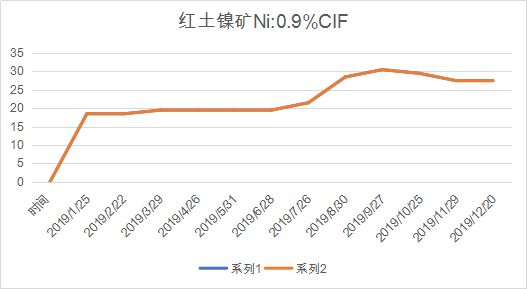 2019年年初,受到巴西淡水河谷矿坝坍塌事故影响,1月镍矿价格相比去年12月略有上涨,但幅度不大。从2月到6月,镍矿价格相对稳定。自7月开始,菲律宾开始进行矿业审查,镍矿价格开始持续大幅度地增长。9月,印尼政府确认,从明年起,将禁止镍矿出口。这使得镍矿价格进一步拉高,到9月底达到高峰。尽管10月诺里尔斯克镍业发生矿山事故,且印尼暂停了镍矿出口,但随着事故影响消退以及印尼恢复镍矿出口,其影响逐渐消退。从整体看,对镍矿价格影响不大。尽管本年度有多个矿商计划将重启镍矿生产,但由于印尼是全球最大的红土镍出口商,其供应缺口难以弥补。因此镍矿价格在今年处于高位,预计明年很难出现回落。