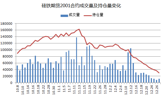 本周硅铁期货2001合约价格较上周进一步上涨,但成交量及周度持仓量“缩水”明显。