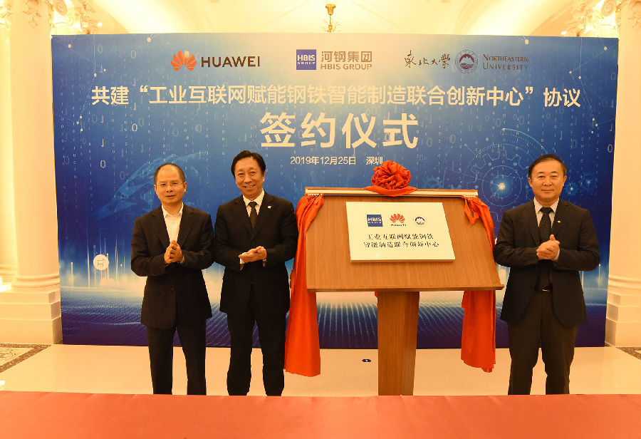 【中国铁合金网讯】12月25日,河钢集团有限公司(以下简称“河钢集团”)、华为技术有限公司(以下简称“华为”)、东北大学(以下简称“东大”)三方本着“面向未来、注重实效、开放协同、共享发展”的宗旨,为聚集全球技术创新要素,推进云计算、大数据、人工智能、5G等技术在钢铁行业的深度应用,引领钢铁行业工业互联网的顶层设计和标准制定,在深圳华为坂田基地举行三方联合组建“工业互联网赋能钢铁智能制造联合创新中心”签约挂牌仪式。