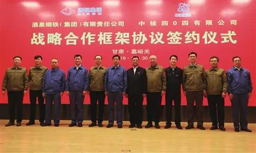 【中国铁合金网讯】12月30日下午,酒泉钢铁(集团)有限责任公司和中核四〇四有限公司战略合作框架协议签约仪式在酒钢宾馆举行。双方将不断深化产品、物流、信息、服务等方面的务实合作,携手实现优势互补、互利共赢、共同发展。