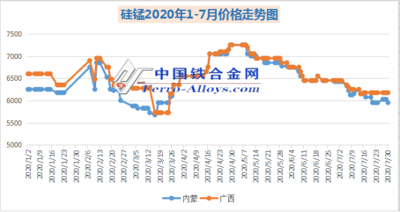 河北钢铁集团8月硅锰定标价6200元/吨,环比下跌200元/吨,采购量26720吨,环比减少1060吨。
