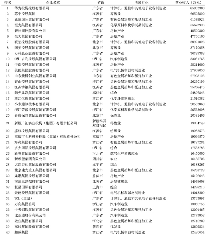 中国铁合金网讯:由全国工商联主办的2020中国民营企业500强峰会10日在京举行,发布2020中国民营企业500强榜单。华为投资控股有限公司以2019年营业收入8588.33亿元蝉联榜首。