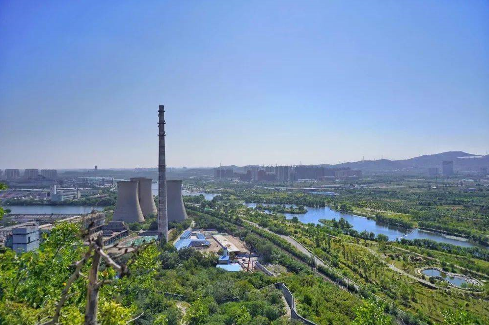 从三高炉西行几分钟,就来到了石景山脚下。山上至今保留着50余处文化遗址,包括晋唐时期的金阁寺、明代碧霞元君庙和众多摩崖石刻。顺山路至山顶,功碑阁这座外形跟颐和园佛香阁相似的建筑伫立于此,站在功碑阁上,俯瞰整个园区,三高炉、秀池、群明湖等工业景观尽收眼底。阳光下湖光粼粼,给首钢工业遗址增加了不少温度。