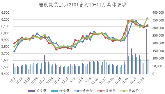 【期货行情】本周硅铁期货盘面窄幅阴跌后回升。硅铁期货主力2101合约开盘价6,172,最高价6,320,最低价6,050,收盘价6,116,结算价6,216,成交量787,969,持仓量98,165。