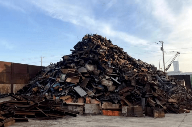 图为在日本三井物产货场的再生钢铁原料,即将发往国内