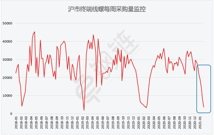 图3 2018年1月以来沪市终端线螺每周采购量监控变化情况