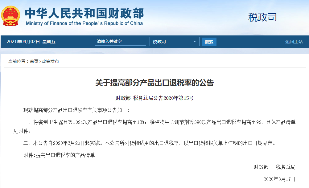 据了解,2020年3月17日,财政部公布关于提高部分产品出口退税率的清单,将122种钢铁类产品的出口退税率提升至13%。