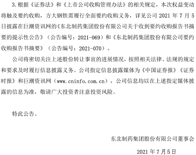 内容来源:东北制药公告