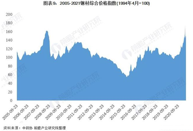进入4月以来,钢材价格先升后降,总体延续波动上行走势。据中钢协监测,6月中旬,中国钢材价格指数为146.89点,比5月末上升2.82点,升幅为1.96%,同比上升43.96点,升幅为42.57%。中国钢铁工业协会发布报告称,由于前期涨幅较大、涨速较快,向下游行业传导困难加大,后期钢价难以持续大幅上涨,应以小幅波动为主。