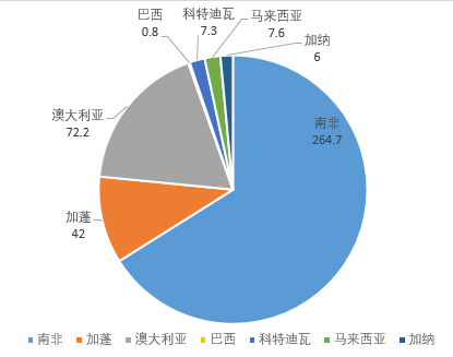 (南非:半碳酸210.1万吨,高铁36.6万吨,中铁14万吨,烧结4万吨)